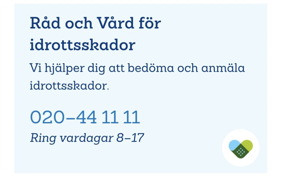 Hej! Här kommer lite info ifall ert barn skulle råka ut för en skada på fotbollsträning eller match så ska ni ringa detta nummer (se bilden). Där får ni boka telefontid hos en fysioterapeut som är specialist på idrottsskador. Fysioterapeuten bedömer skadan via telefon och ger råd om vidare behandling. Om fysioterapeuten bedömer att du behöver mer än rådgivning för att fastställa skadan ingår upp till två besök hos fysioterapeut, ett besök hos läkare och en röntgen vid behov. Det är fysioterapeuten på Råd och Vård för idrottsskador som bokar in ditt besök - alltid hos en vårdgivare som är expert på idrottsskador. Om din skada är ett försäkringsfall hjälper fysioterapeuten dig att dokumentera och anmäla skadan direkt till Folksam. Detta ingår när ni betalar medlemsavgiften. /Ledarna P2014 7 dec 2024 2kommentarer